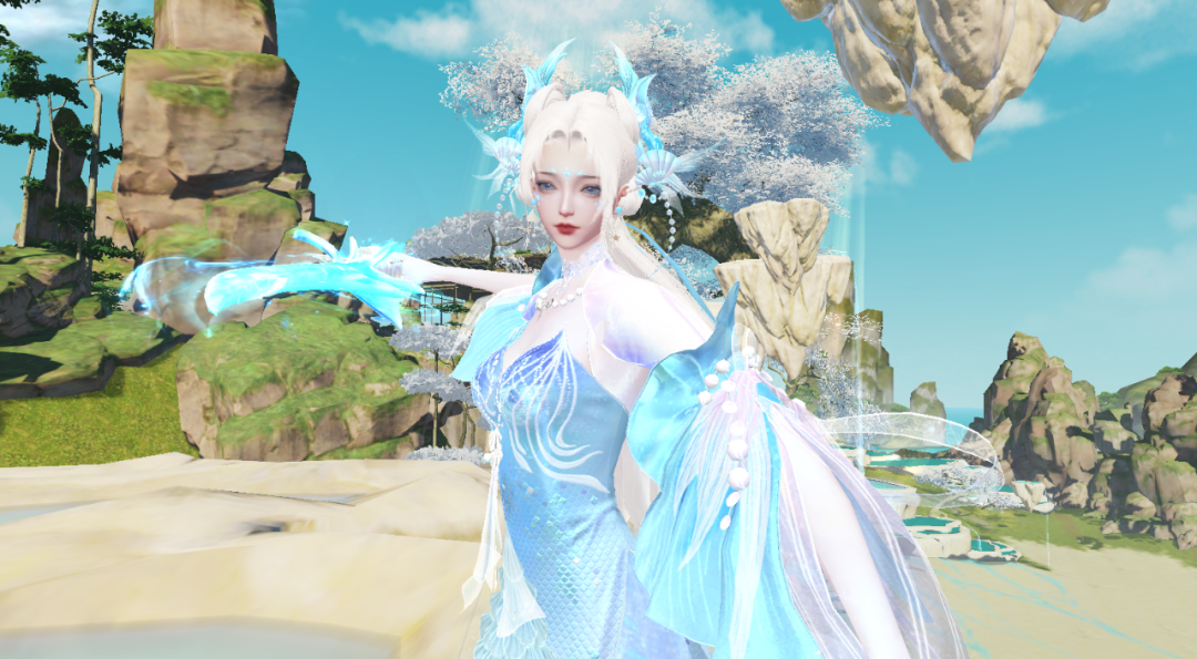 少侠们好呀! 这日子真是一天比一天热了 不知少侠们会选择去哪里避暑呢? 嘿嘿,若是近日去到落神渊 说不定就可以逮到本天哦~ 记者小天发现 最近有不少少侠 换上了【源启】脸模拍照 其宛若鲛人的清冷气质 一下便把氛围感拉满了 原图直出也无所畏惧 简直就是夏日神图必备妆容! 脸模【源启】于去年冬日 随着南海溯梦版本上线大荒 相信很多少侠都难以忘记 其精致的鲛人妆容 还请少侠随着小天的脚步 重温这妆容所带给我们的惊艳 欣赏少侠们产出的绝美神图吧! 源启·女