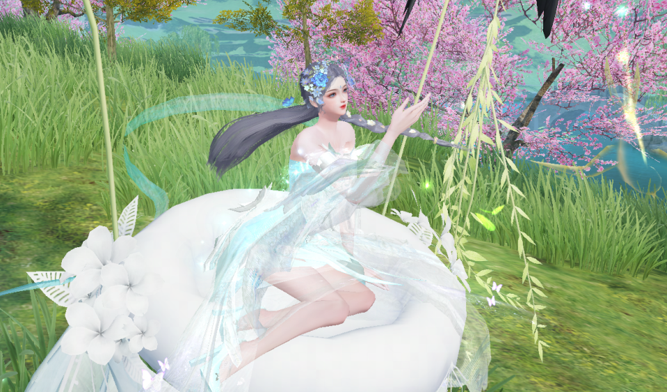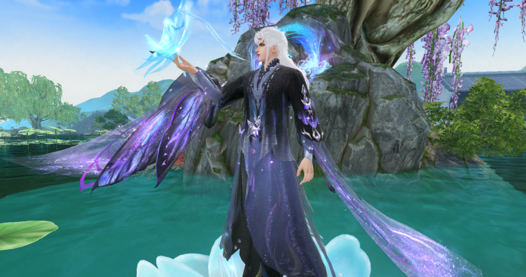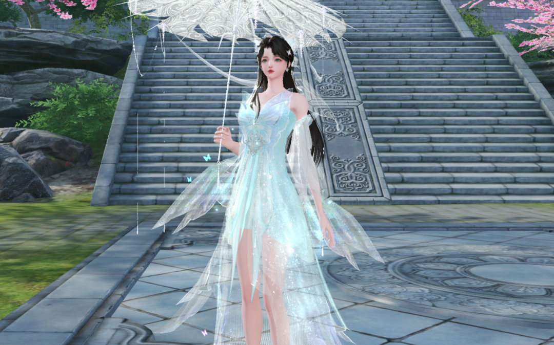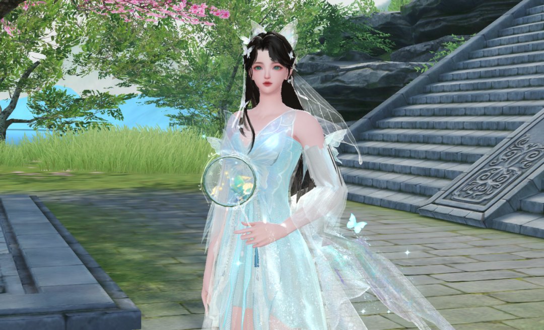 身侧有碧蝶光点环绕
