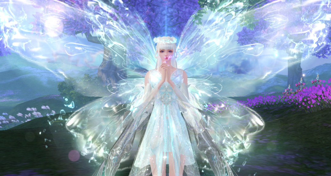 身后晶莹剔透的蝶翼焕发微光