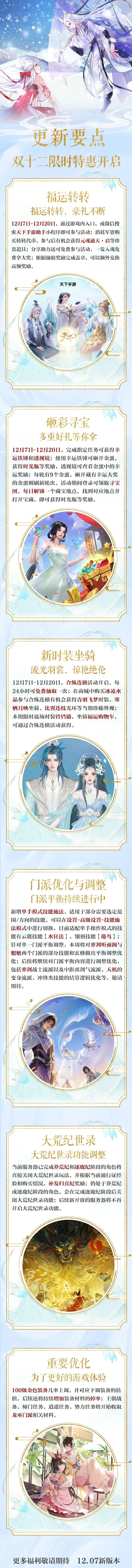 本周更新后,大荒纪世录功能将会陆续进行关闭,具体将有一下调整: