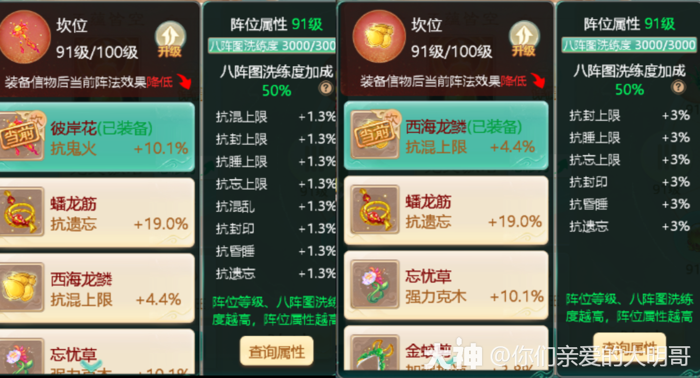 3.站桩非躲闪角色,携带控制上限的信物比抗仙法、鬼火、毒、物理等抗性属性的信物性价比更高。