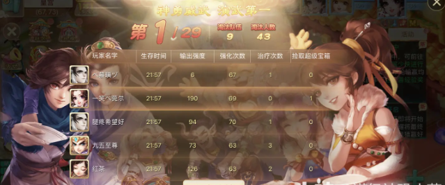 杀过几队之后,调整装备耐久,然后去点那些连杀次数少的,反正是连杀次数比自己低两队以上的,这样比较稳妥。杀敌越多,自身属性也就越累积越强。按照这个办法去打演武场,只要不是脸太黑,基本上都能吃到鸡!