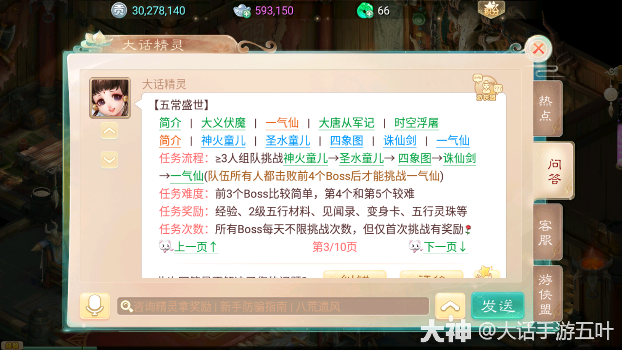 五常盛世,10次小怪(大义伏魔),周末BOSS (巧斗一气仙),时空浮屠