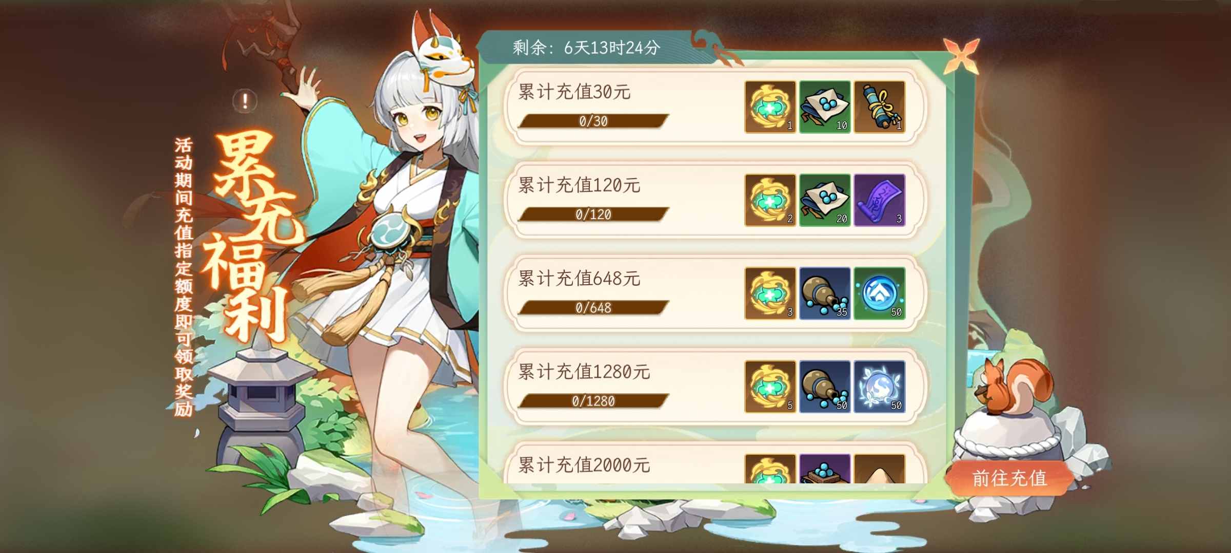 活动内容:活动期间,累计充值金额达到指定数量可以领取充值奖励。