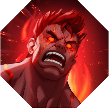 怒不可遏的气势,用碎珠和较为纷乱的光线体现敌人的重伤状态。与其他两张图不同的是,我们将狂隆的眼神聚焦,用来体现精神的击中而即将造成的致命伤害。图像部分做了