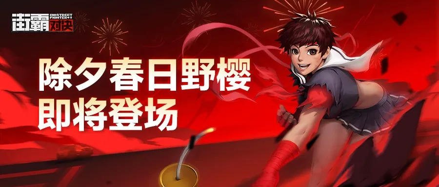 1月31日,《街霸:对决》将迎来一位全新格斗家,除夕春日野樱即将降临街霸世界,在除夕夜时点燃烟花爆竹,与格斗家们一起喜迎新春!