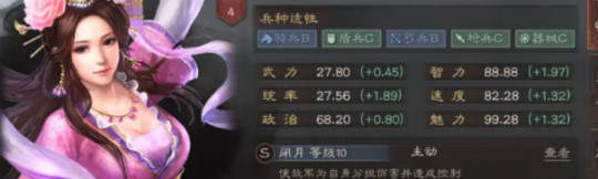 貂蝉作为一个智力型武将,基础智力和成长准一线水准,虽相比诸葛、庞统之流有所不及,和陆逊,周瑜相比只是略有不及;相比大部分智力武将等脆皮法师来讲貂蝉的统率是很不错的,基础和成长都是不错,