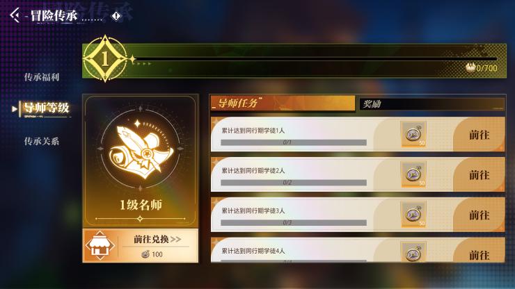 双方达成共识,即可缔结师徒关系,开启专属冒险传承!