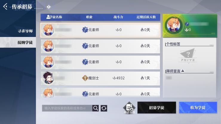 身为导师,你也可在“接纳学徒”界面向看好的学徒发出邀请