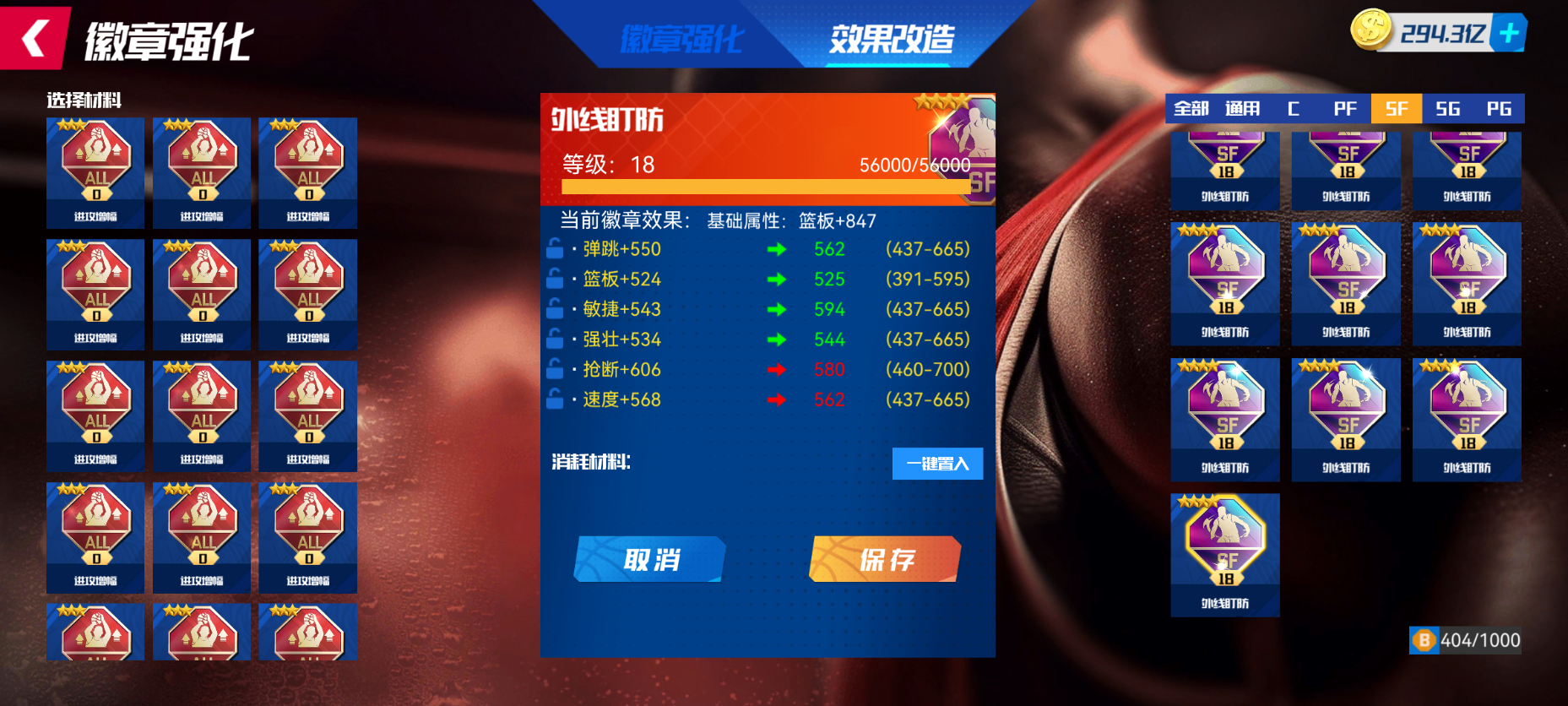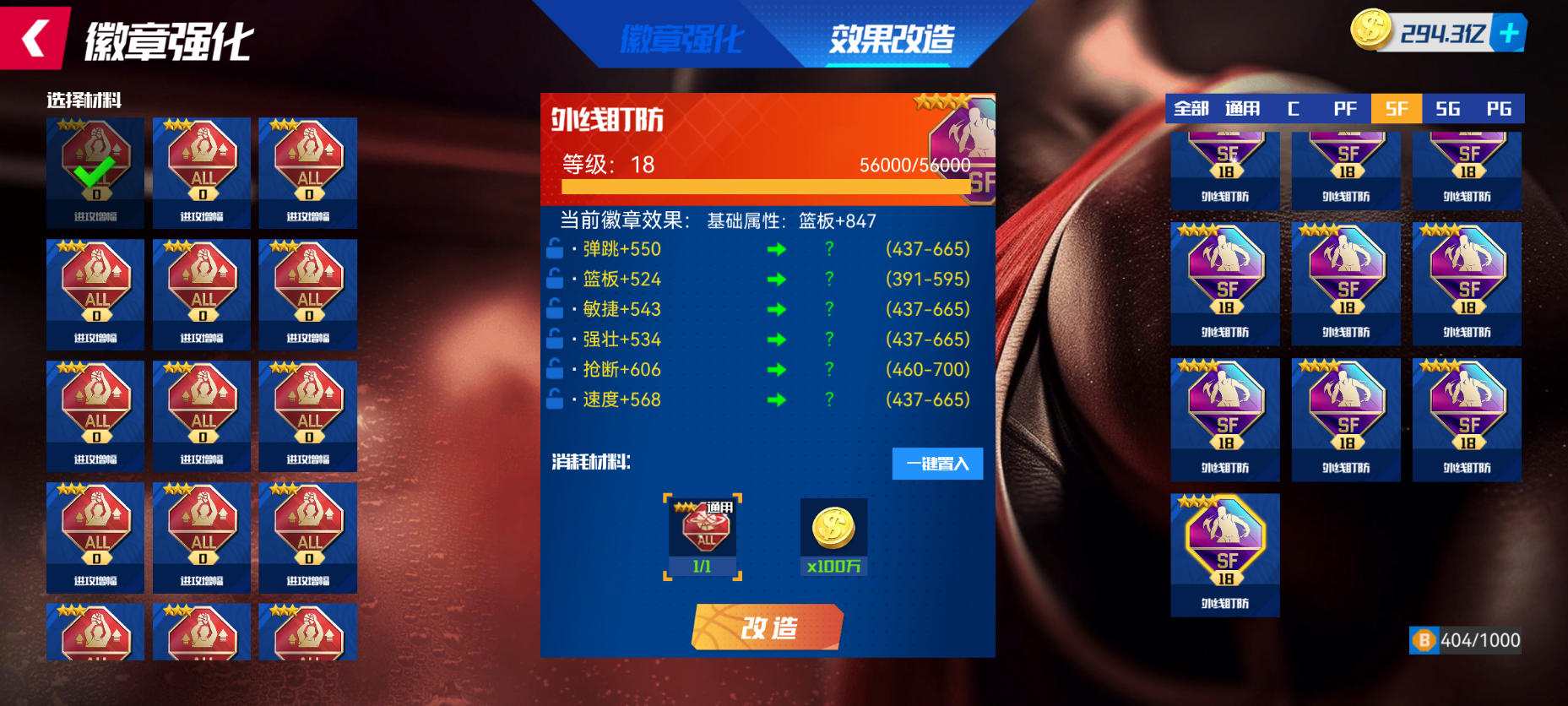 徽章系统新增【效果改造】功能,经理人可以不断加强四星徽章。【效果改造】仅适用于等级达到18级的四星徽章,点击【一键置入】可自动放入左侧材料栏中未强化过的三星通用位置徽章。