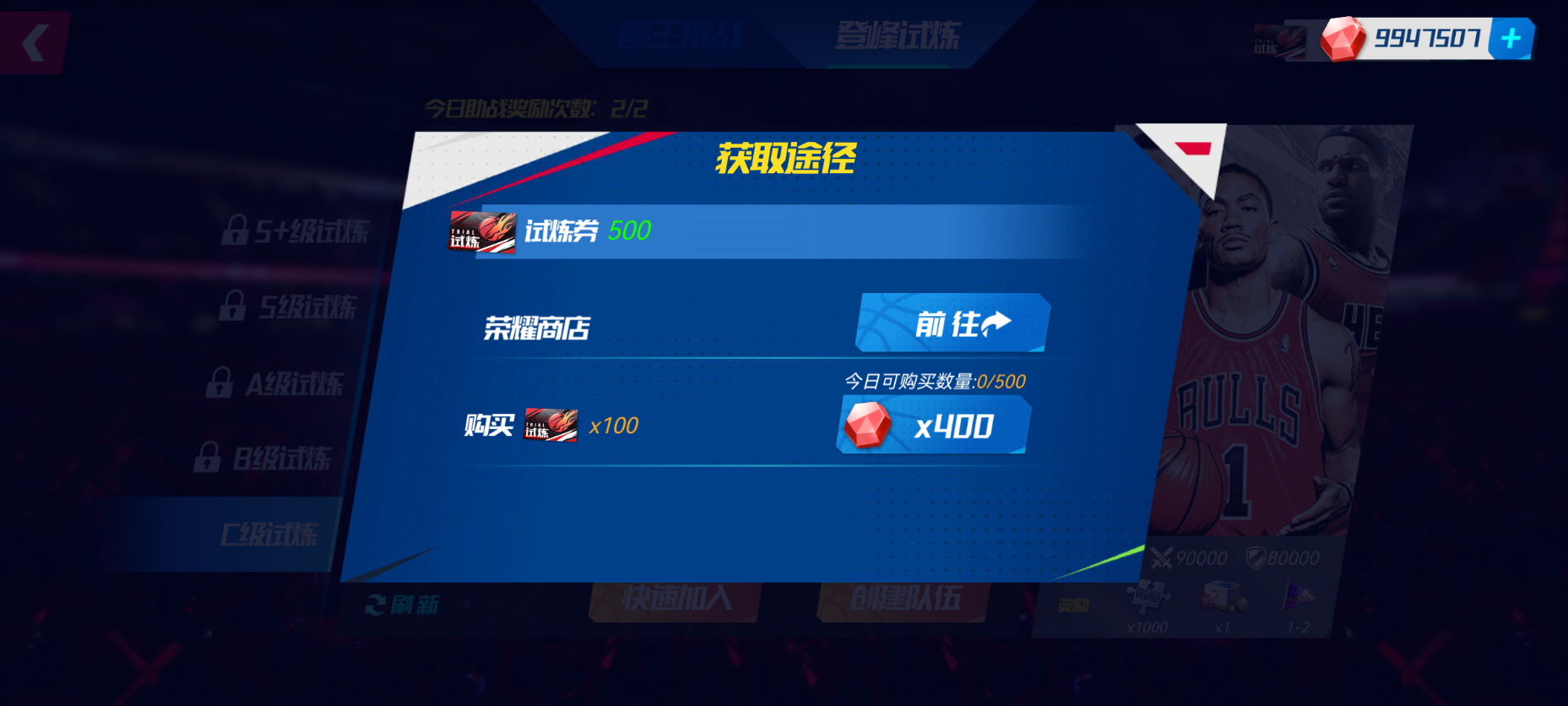 参加【登峰试炼】需要使用专用入场券【试炼券】!荣耀商店中每日可获取500张,每日宝石可获取500张,合计每日两次挑战机会供各位经理人展现实力!