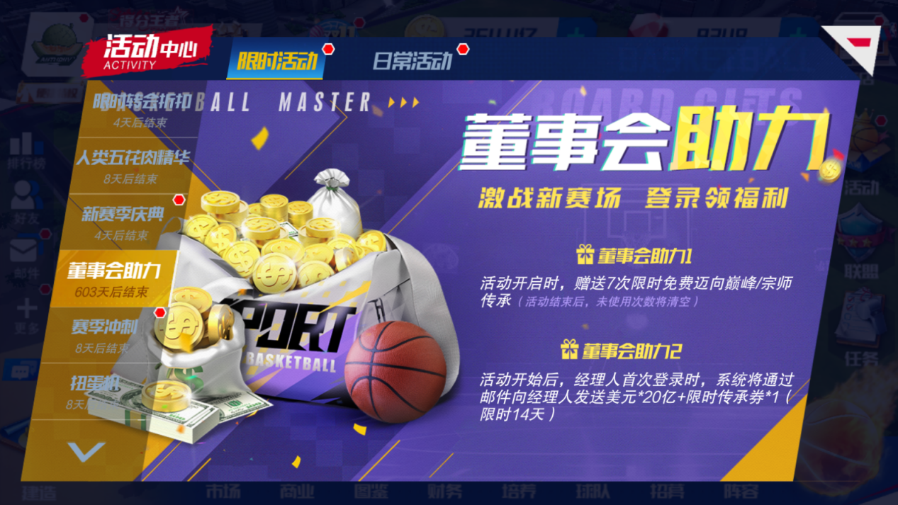 2. 活动开始后,经理人首次登录时,系统将通过邮件向经理人发送20亿美元和一张限时传承券。(限时14天)