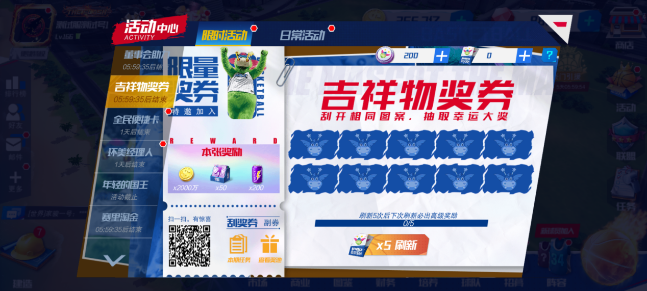 此外经理人可随时消耗刷新票据换一张新的奖券,每刷新5次,下一次必出现高级奖励哦。