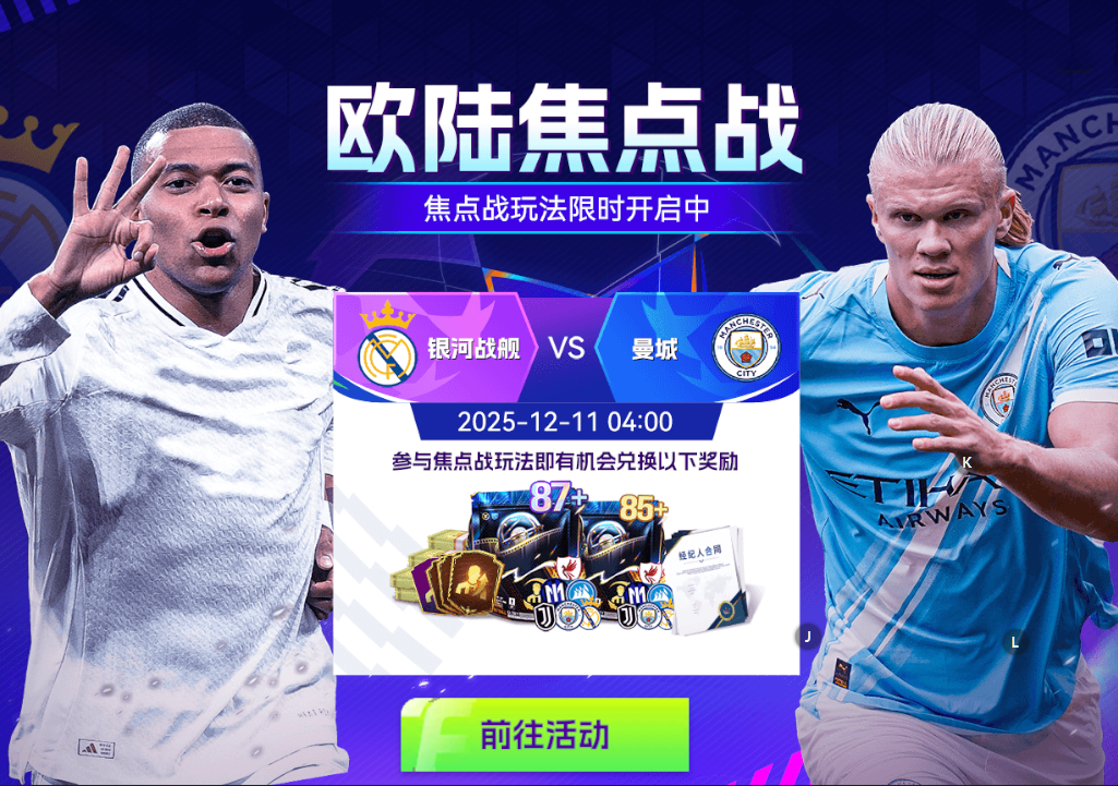 《最佳球会》焦点战狂欢来袭!12.06-12.13活动期间玩法限时开放中,参与焦点战各类玩法,即可轻松获取「焦点战币」,更有重磅大奖 ——【87+】焦点战豪门混合球员包等你来兑换,有机会将豪门核心球星纳入麾下,为球队注入顶级战力!