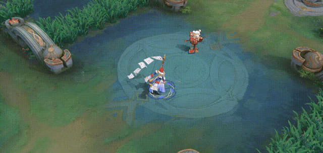 贞德的战旗会周期性充能,当周围存在敌人时,将消耗充能向外辐射神圣力量,对周围敌人造成物理伤害,每命中敌方英雄,将获提升物理防御和法术防御