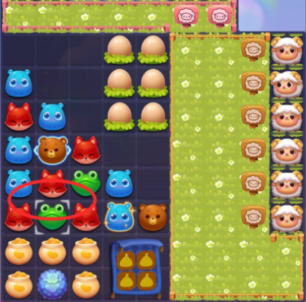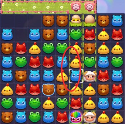 3:贴边三消消除击打咩咩羊,或者组合直线特效等助力消除,击打咩咩羊将其送入羊圈