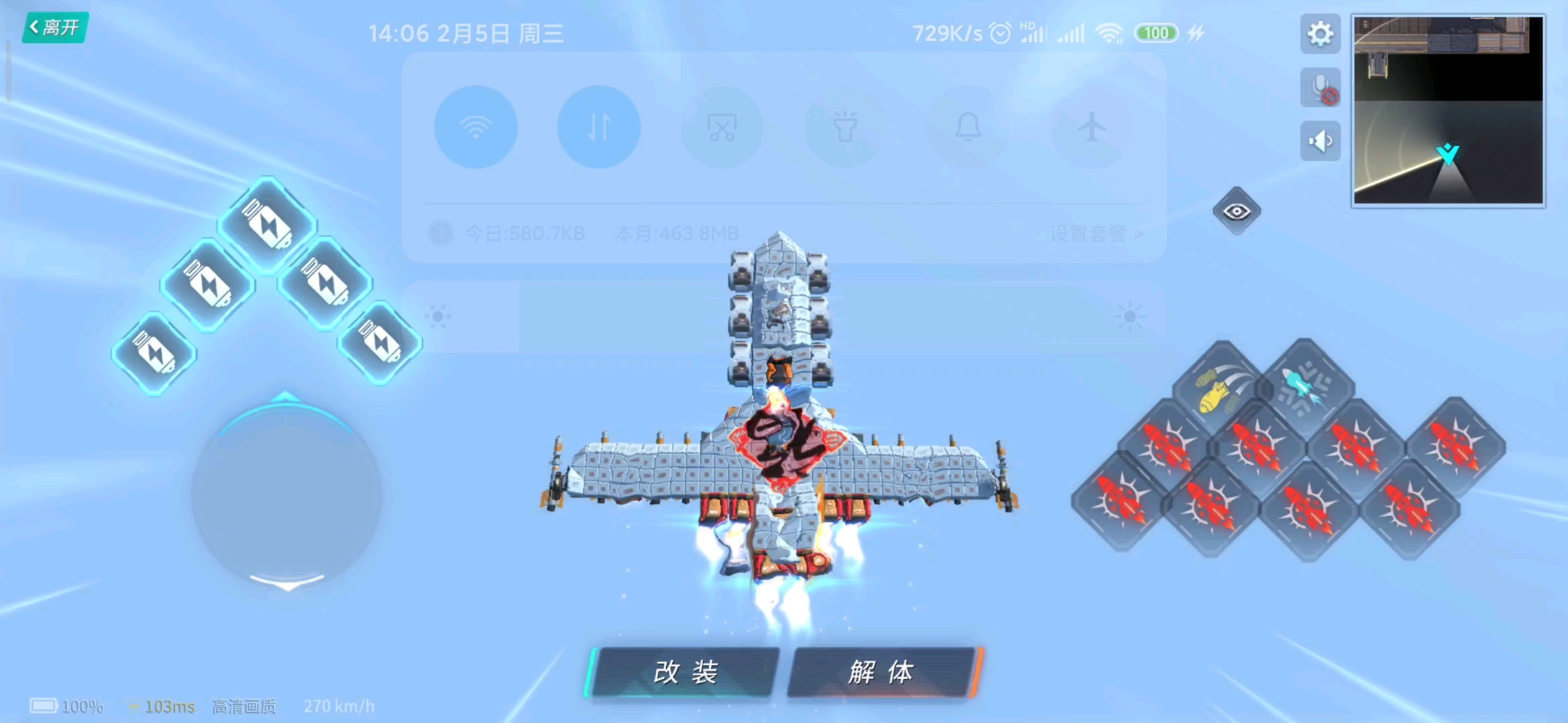 小米号无人机查打一体,火力强大,装配8发天罚系列巡航导弹,支持对空对地作战,还配备有红外干扰弹(迫击炮),必要时可以用于躲避热追踪导弹打击(当然这里没有)。