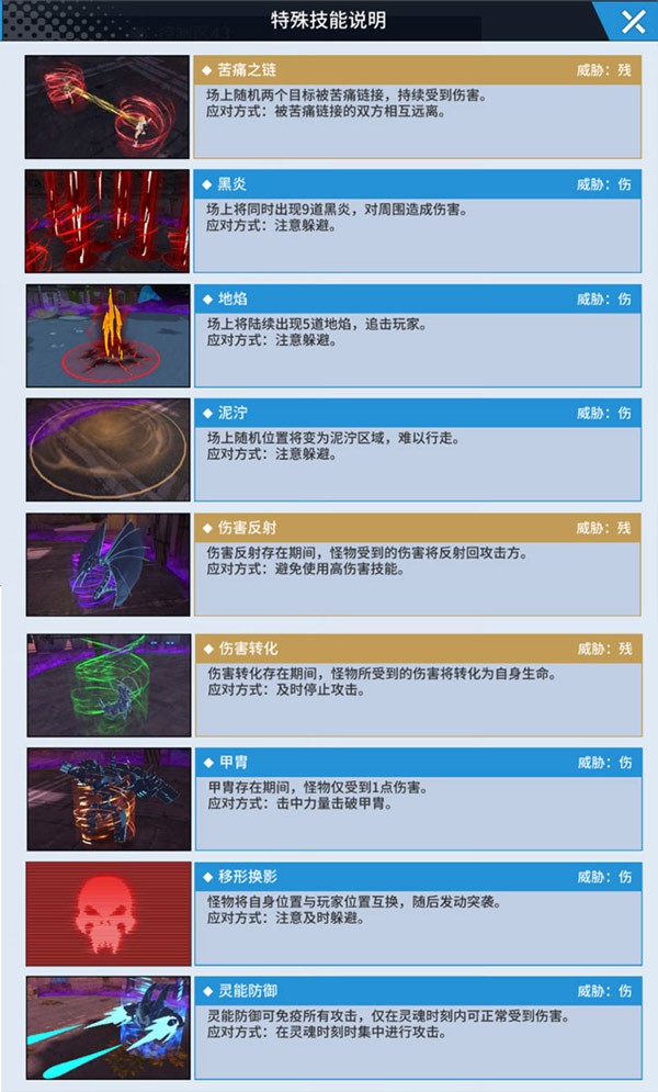 在虚空裂隙的每一层中,敌方都会有不同的特殊技能!为了方便各位异能者提前做好准备,因此已经为大家整理好了一份技能说明!