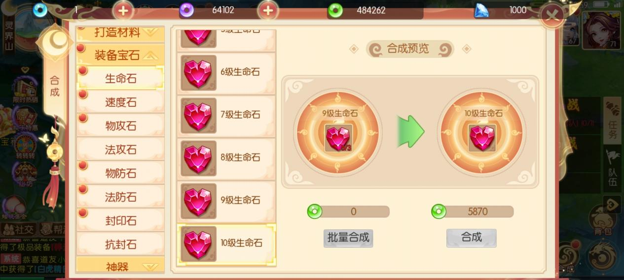 而宝石的种类也是高达8种之多,分别有:生命,速度,物攻,法攻,物防,法防,封印,抗封。