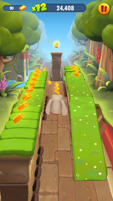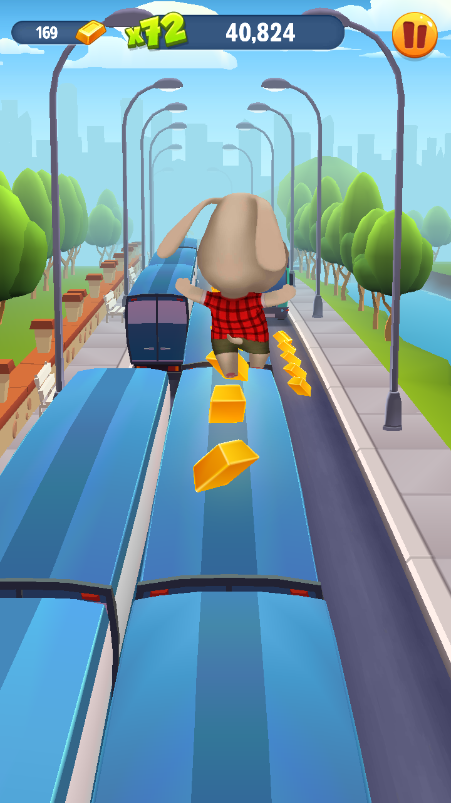 那么如果是在高空中几条跑道都有金条的情况,我们其实可以在跳跃后迅速滑动屏幕操作角色在空中变道,这个如果是新手玩家需要多多练习才能够熟悉哦。另外,如果想不漏掉跑酷中的资源,则需要我们做好预判了。提前的变道或者跳跃是获取更多资源的关键。