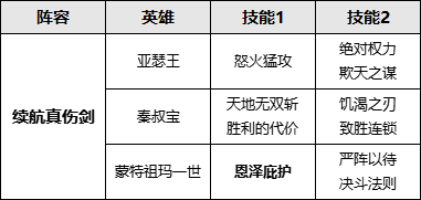 (3)秦叔宝的固有主动技裂伤之击可以增强亚瑟的伤害,并提高光明祝福期间的真伤效果。如果辅助技能不够可以切换成天地无双斩和饥渴之刃,让秦叔宝做副C,补足伤害。