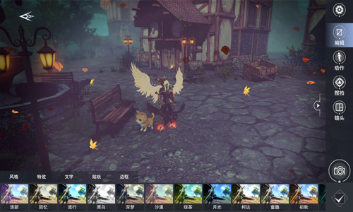 游戏内置的相机有基础数值调整,适用各种需求下的拍摄,可以增添大量滤镜,自定添加特效,以及文字和贴纸。多人同框可以选择多人动作,“飞吻”“卖萌”“放电”等多种组合,每种动作都适配相应的动作条,通过调整动作条可以进行定帧拍摄,从而摆拍出不同的动作效果。