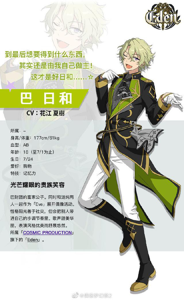 在乐元素开发的音乐节奏手游《偶像梦幻祭2》中,有一位音乐学员同时也是巴财团的富家公子,他那优美舒展的表演,也让无数粉丝们心动。他就是音乐组合Eden的巴日和。下面就来一起看看巴日和首次公开的个人档案吧!