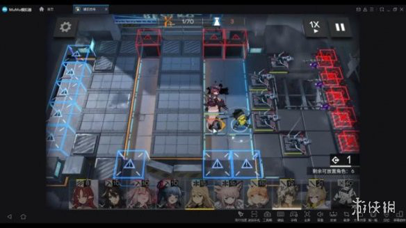 2.撤砾上桃金娘,然后按下图所示站位依次上单狙流星、单奶微风、单狙梅、单奶苏苏洛,此时后门的破阵者登场可以先用砾拦一下,再补一个单狙杰西卡对其输出。