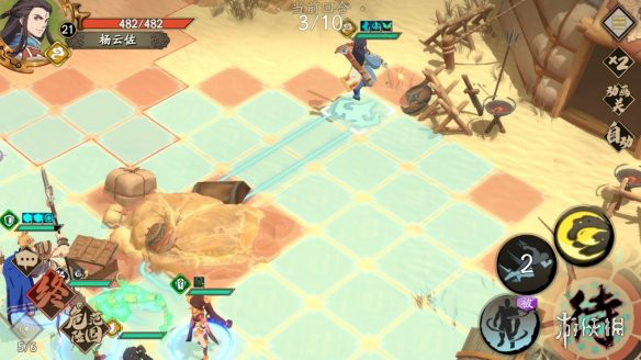 杨云佐上去干掉法师然后移动到最右边让开位置,方便去拿宝箱。