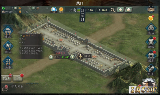 【占关口,守郡城】 关口的出现,为许多玩家带来了十足的安全感,在建造或占领关口后,其下郡城只能迁入本军团的人,其他人无法迁入其中,就算敌人铆足了劲儿想要攻打进来,也需要先突破关口,能成功占领关口,才算是迈出了攻城的第一步,后续还会有第二第三第四步,关口的出现完美复现了一夫当关万夫莫开的情景。