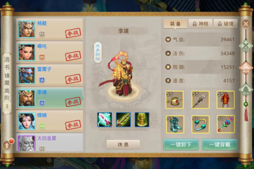 作为天帝的护驾天神,李靖的法术伤害不必多言,他的【六陈鞭】一出,必杀率秒涨20%。