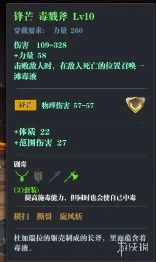 备用套装:由于毒斧缺乏输出能力,为了应对限时的挑战关卡,可以备一套鲁莽斧头。