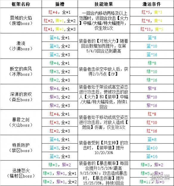 激流:稳定对地加伤,不管是给轰炸机攻击机还是火炮歼击炮还是小8用,都有不错的收益,缺点是有蓝色插槽。