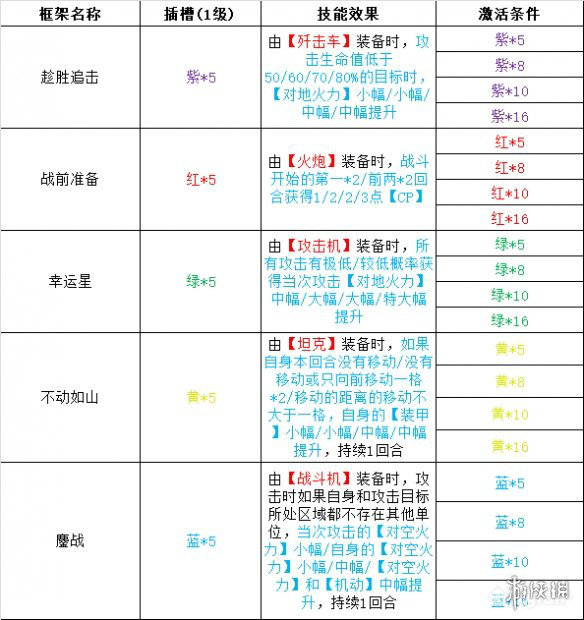 鏖战:战斗机专属,加成聊胜于无,并且触发难度有点高。