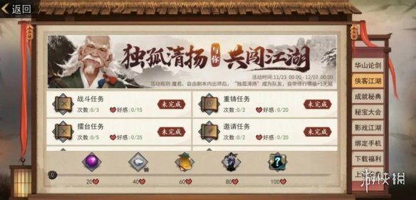 活动奖励:经脉丹、精铁、五岳残章包、五岳宗角色卡包、独孤清扬暗金角色卡