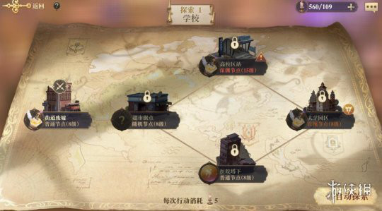 根据自身实力选择对应探索路线之前说到探索有四类节点,这四个节点分为两条路线,自身战斗力不强的话,我们可以选择走普通节点的路线,这条路线难度不大,挑战起来很轻松。如果练度够的话,可以尝试挑战深渊节点,获得翻倍的奖励。