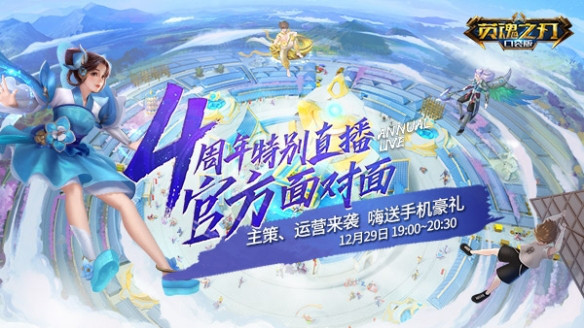 《英魂之刃口袋版》四周年庆典今日开启!四重福利限时降临,积分英雄、稀有皮肤、传送特效等海量奖励等你领!除此之外,四周年庆典专属直播今晚放送,神秘嘉宾、全新版本、互动问答嗨不停!还等什么?快快约上平时开黑的小伙伴们,一起欢度只属于我们的周年庆典!