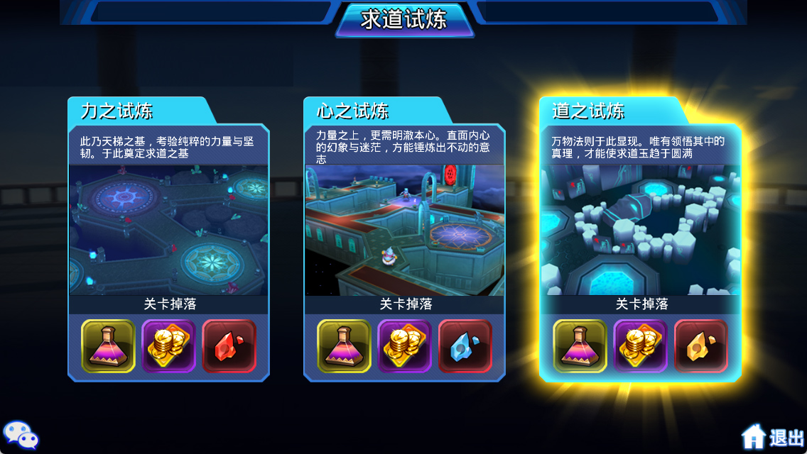 资料片更新后,求道试炼第三层【道之试炼】正式开放,通关即可获得珍稀材料【守遁晶】!同时,原有的扫荡奖励与心魔挑战奖励不变,所有收益均可照常领取~