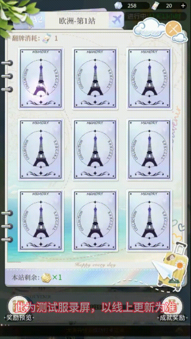 每次翻牌消耗的【环球机票】数量及获得的积分