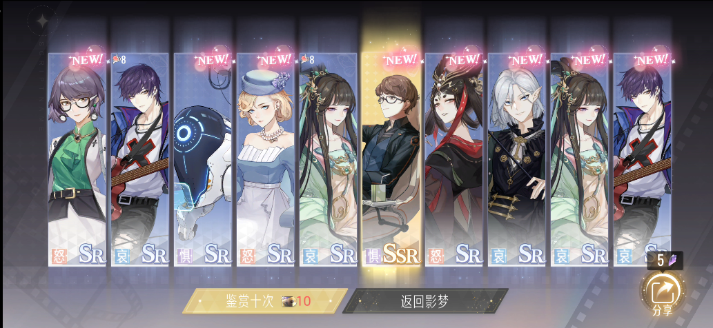 不得不说《绝对演绎》的抽卡还是很良心的,SSR基本上每次十连都会出。