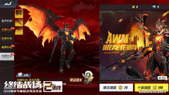 如果说原石系列代表着神秘的守护力量,那么在枪械补给中亮相的“恶龙”系列则象征着远古的杀戮气息重临。破损的双翼、可怕的獠牙,恶龙套装生动呈现了传说中的地狱龙神模样。玩家只须抽取枪械补给即有机会获得AWM枪械外观“AWM-恶龙伯爵”,伴飞滑翔翼外观“恶龙之翼”和男性角色外观“恶龙伯爵”!