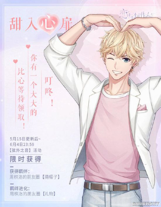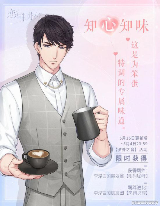 超人气乙女恋爱手游《恋与制作人》于今天(15号)点亮“520的甜蜜默契”主题活动,解锁他的柔情寄语,与他一起玩转“花式比心”。5月15日更新后~6月4日23:59,参与活动可免费兑换520主题典藏R羁绊。此次更新还有多重玩家期待已久的活动呈现,【专属纪念】全新系统上线,多种形式羁绊复刻活动开启,和羁绊升华优化。
