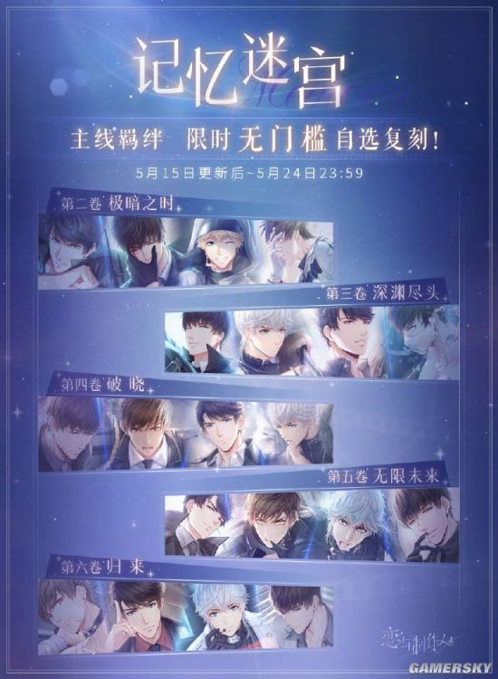 主线羁绊限时无门槛复刻开启,5月15日更新后~5月24日23:59,可从【精彩活动】-【记忆迷宫】进入主线羁绊复复刻活动,从【极暗之时】、【深渊尽头】、【破晓】、【无限未来】、【归来】五卷中,任选一期开启对应主线羁绊获取活动,活动期间不受主线通关进度限制。无门槛活动结束后,以上五卷的记忆迷宫将转为常驻复刻活动,随主线通关进度获得开启权限,开启道具【命运骰子】将定期在票房争夺战内置商店中上架,使用票房奖章即可兑换。