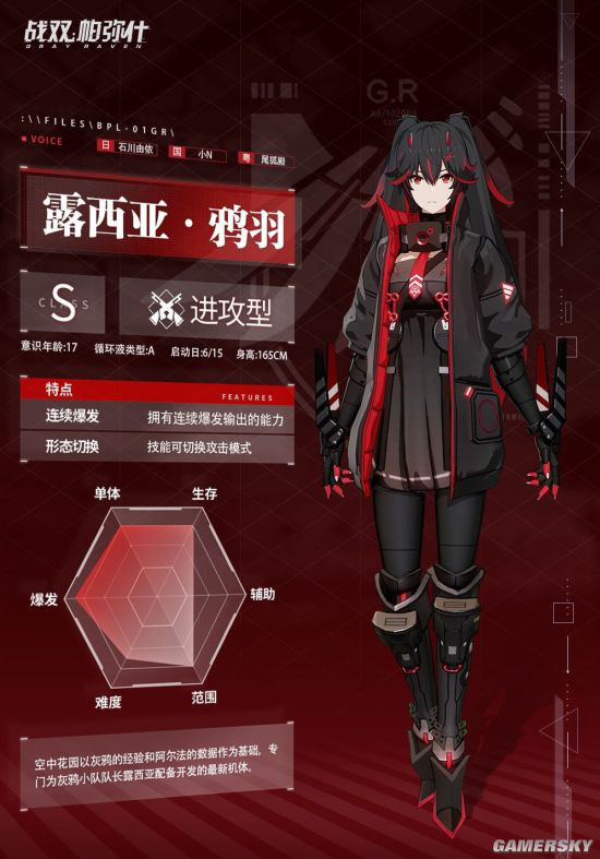 从官方放出的角色六芒星图来看,露西亚·鸦羽是迄今为止S级中数据相当顶尖的进攻型构造体,除了辅助能力稍弱之外,爆发、单体、生存、范围、难度等能力极高,并且拥有连续爆发输出能力,还可在物理形态与寒冰形态中切换攻击模式,近乎完美。
