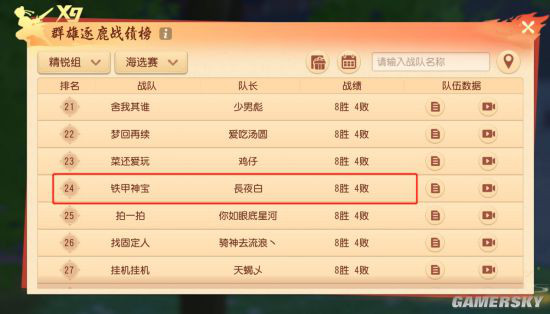 而在精锐组方面,海选赛阶段“铁甲神宝”队战绩并不突出,仅以8胜4败的战绩位列海选赛榜单的第24位。