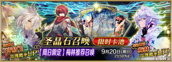 活动期间,9月6日、9月13日、9月20日还会开启「【周日限定】梅林推荐召唤」,同样活跃于活动中的限定从者「★5(SSR)梅林」会在此次的推荐召唤中登场!此外「★4(SR)齐格飞」、「★3(R)风魔小太郎」也将参与此次推荐召唤!