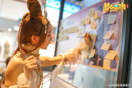 一曲飘飘欲仙的舞蹈过后,现场开启了跨次元的互动。少侠们参加科举答题,如愿以偿获得了惊喜好礼。本次线下科举答题还原了游戏科举玩法,舞天姬现场当“主考官”,在仙女主考官的加持下,少侠们天赋全开,礼品拿不停。除了有精彩的科举答题玩法,现场少侠还在表白墙上为一博和三界写下了深情告白。