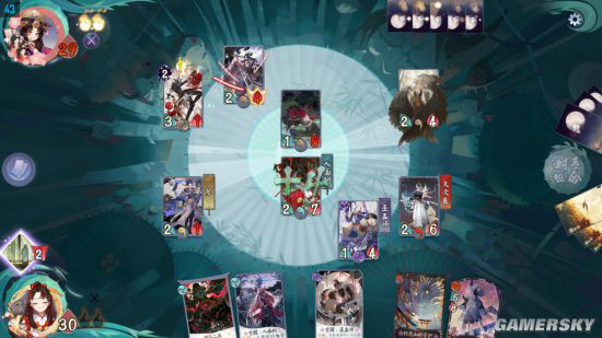 通过战斗触发被动和不断的施蛊限制对手战斗式神。后期释放幻境进一步减少敌方式神攻击。荒提供后期战斗区输出和过牌。久次良保护我方单位。人面树提供站场和单解。