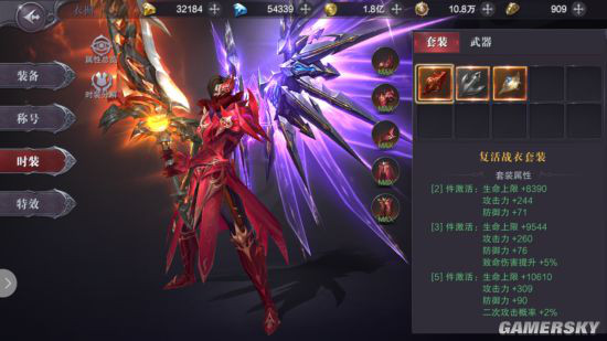 称号之后,便是大受勇士们喜爱的时装衣橱了。我们知道,在《真红之刃》中,每套时装的套装都可分为:头、胸、手、腿、鞋5个部件。每个部件在激活后,都会为勇士们提供可观的基础属性加成,勇士也可通过消耗多余或者不喜欢的时装,来升级基础属性加成。当勇士同时穿戴(2、3、5)个部件时,更会激活对应的套装属性。值得一提的是,武器也拥有时装。武器时装激活后,勇士进行保存佩戴,可改变当前的武器外观,并提高基础属性加成。