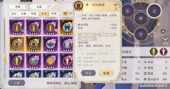 首先我们先来了解契印纹套装种类,现版本契总共有18种套装效果,每种套装的激活效果各不相同,所有套装2件套和4件套的激活效果相同,都是百分比的属性加成,3件套的效果是一个被动效果,很重要,所以一般情况下我们在搭配契印纹时,凑足3件套的被动效果是必须达成的。智、灵、形3个位置的契印纹只属于唯一一种套装,而神之位则属于两种套装属性,有这一机制在,我们4个位置也能凑齐3+2套装的搭配,这也是搭配契印纹中最常见的搭配方式,当然凑齐4件套属性也是不错的选择。
